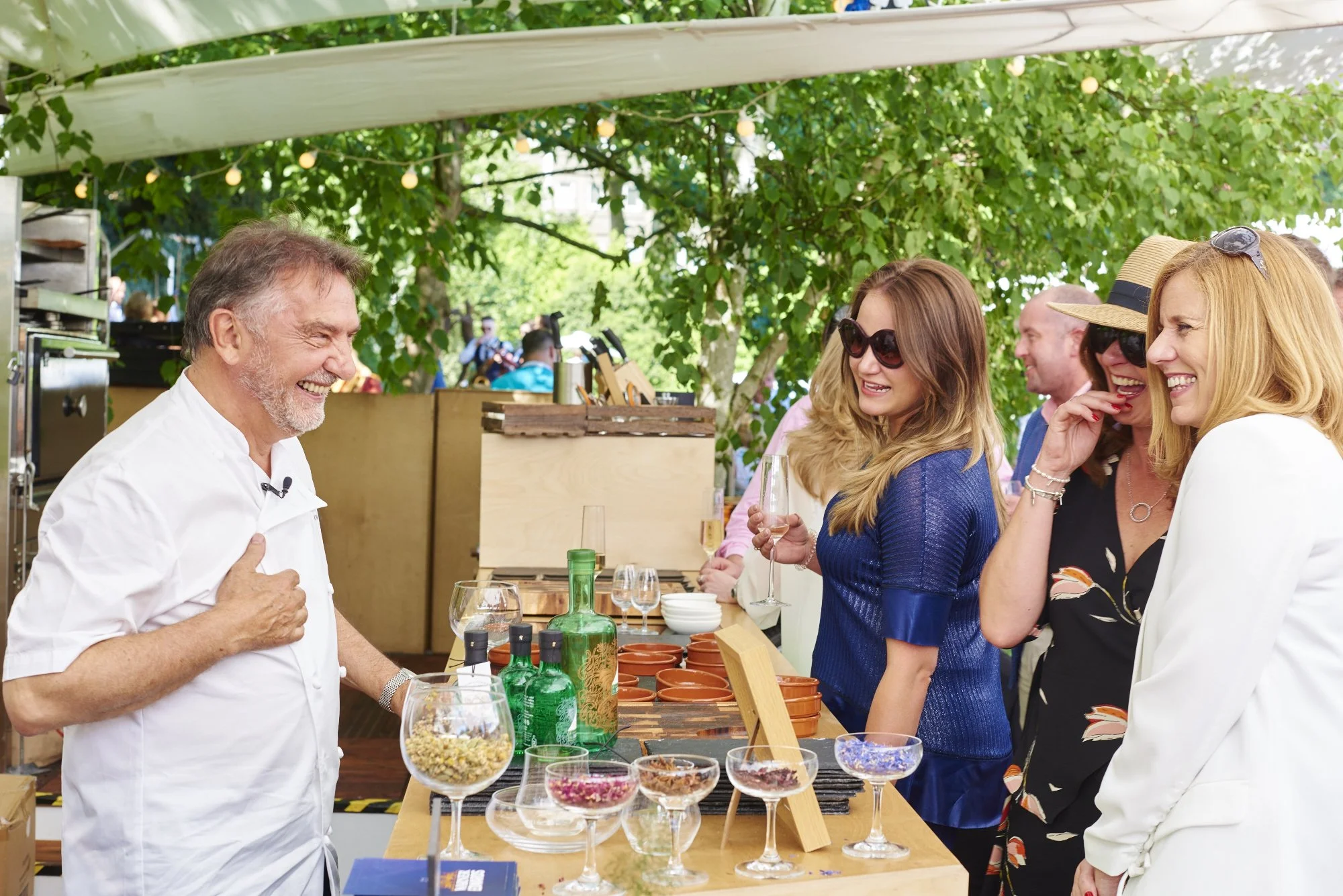 The renowned chef Raymond Blanc OBE created ‘Jardin Blanc’, a special pop-up restaurant at the RHS Chelsea Flower Show. It was a hidden wonder, sectioned off from the public area of the event. Each year the restaurant showcased artists, and their design team approached me to create something for 2017.