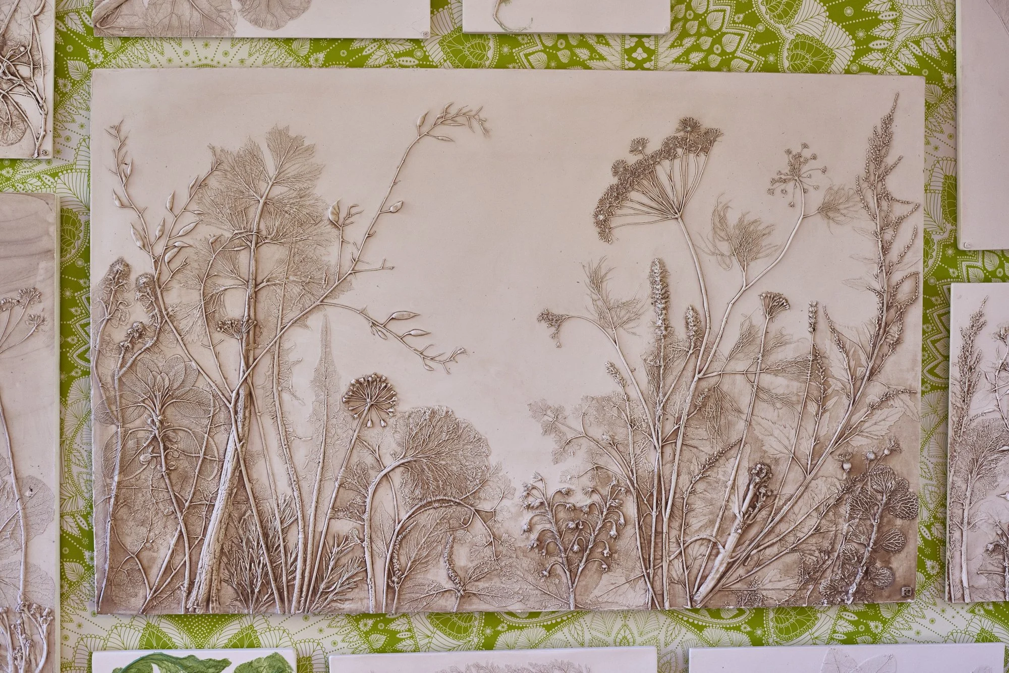 I remembered going to Raymond’s famous restaurant, Le Manoir aux Quat’Saisons in Oxfordshire, when I was 16 years old as a special treat with my parents. I still have a photo of me among the colourful rows of chard which I loved. So, I asked if I could go to their kitchen garden and select edible plants to cast. The head gardener was very helpful and having access to such great plants was like a dream come true. I used a wide range of edibles including beetroot, amaranthus, fennel, cabbage, sorrel, lettuce - and edible flowers such as marigold and borage. It must have been the first time that I’d created a specific collection of themed pieces numbering around thirty. I later found out that Queen Elizabeth II attended high tea where my work was handing, so I’d like to think that she also enjoyed them!