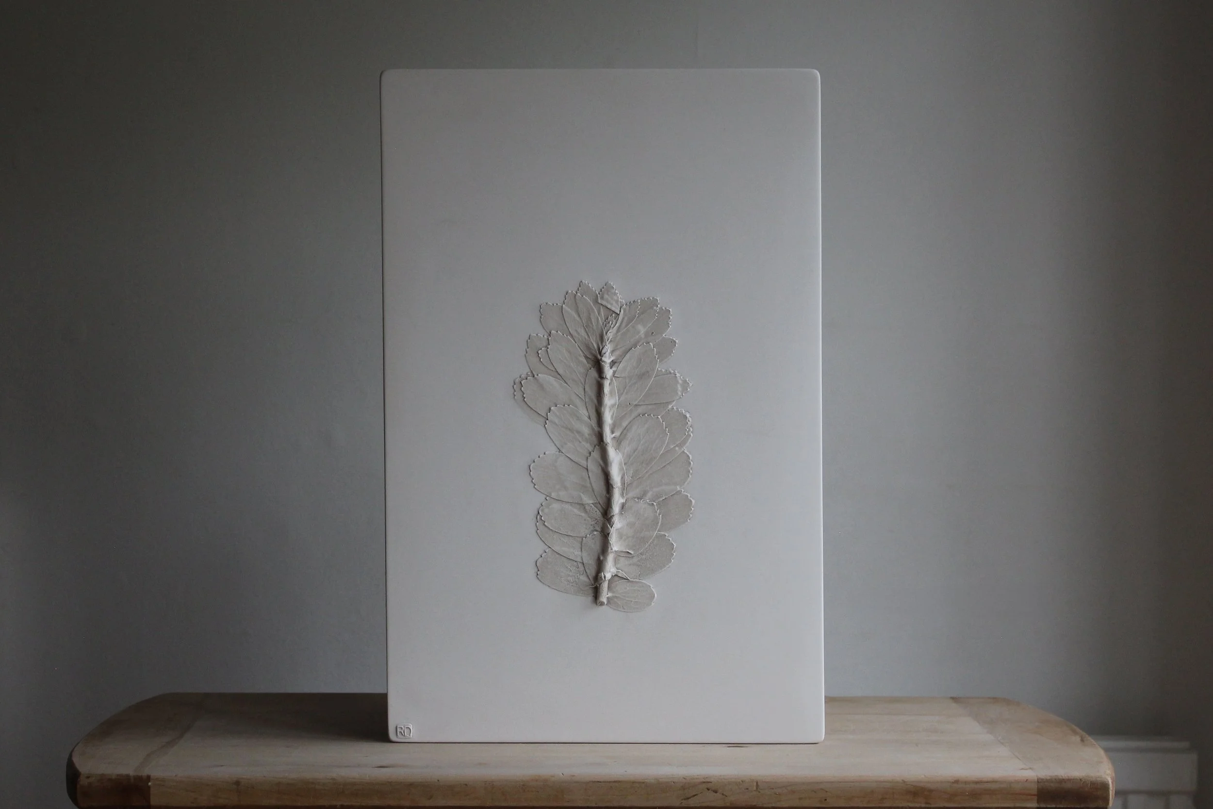 Other works include casts of drought-tolerant Beech and Hornbeams from Romania and Georgia; Elms, Ash, and Horse Chestnuts threatened by disease; and the Oak, celebrated with branches and germinating acorns from Wakehurst. Each piece begins with a real specimen, pressed into clay to record its form in detail. Together, they offer a tactile record of nature’s resilience, fragility, and capacity for renewal.